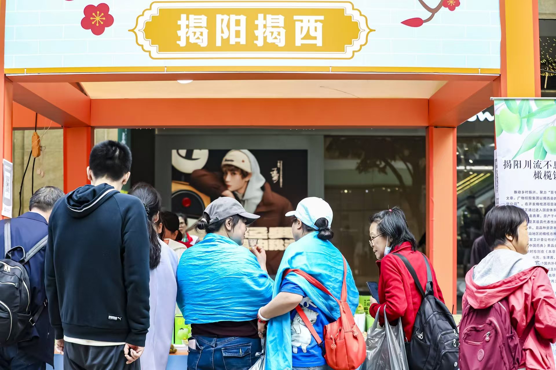 “这是第一次喝,一口下去有点涩,多喝两口就很回甘。”一位前来尝鲜的市民刘女士称赞道。产品不仅吸引了本地顾客,许多外省游客甚至外国友人也驻足品尝,来自欧洲的Eric一家品尝后,便对这份独特的东方风味竖起了大拇指。展位相关负责人表示,产品日均售出超百瓶,市场反响热烈。“对揭西橄榄来说,北京路是一个绝佳的展示窗口。”她总结道。